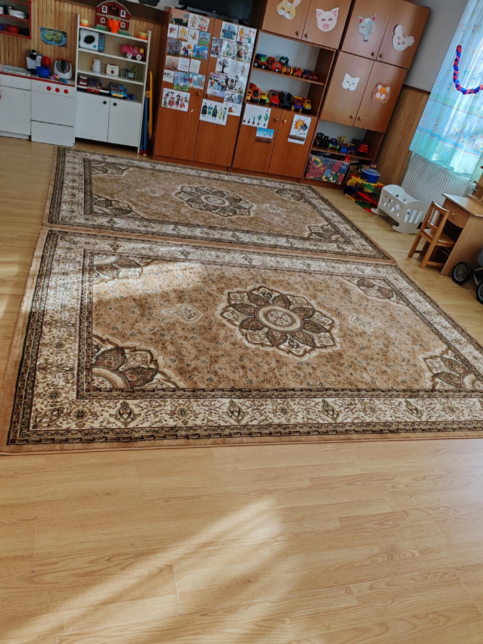 Az óvoda termeibe új szőnyegek kerültek, amelyek hozzájárulnak a gyermekek kényelméhez és a nevelési környezet minőségének javításához.